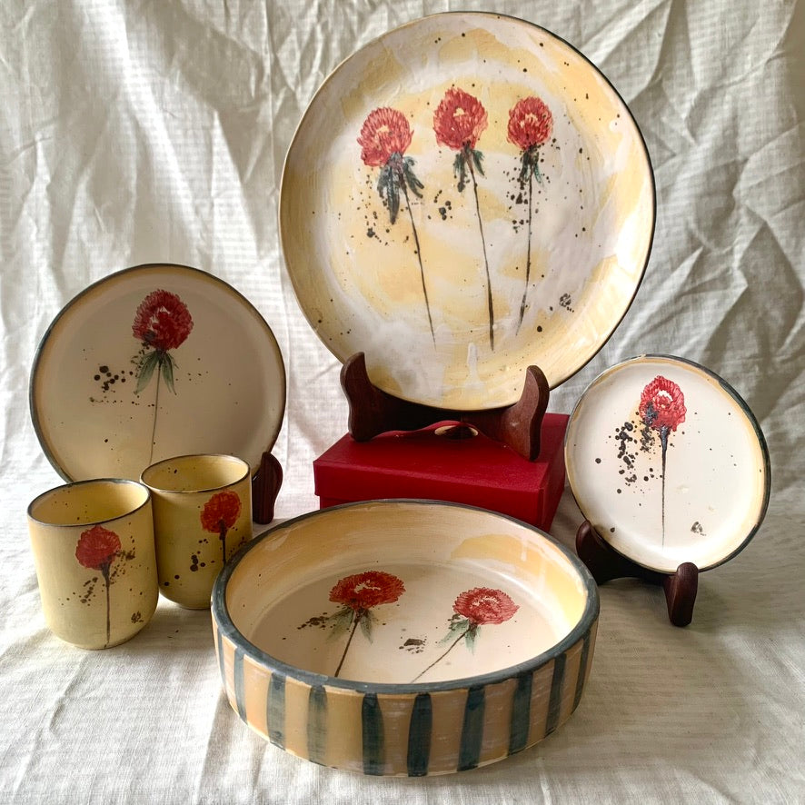 Disclaimer: Every piece is handmade and will lack the perfection of a machine. Most products will rather show the distinct character of a human hand and the imperfections in the form of slight variation in size, color, brush strokes, finish etc.. The picture of the product shown is of just one of the pieces from the collection. The piece that you may receive will be similar but not same and will come with slight variations. Please be mindful of that before you make the purchase. In the end, I would like to really thank you for the interest you have shown in my work. Patrons like yourself, keep us going.