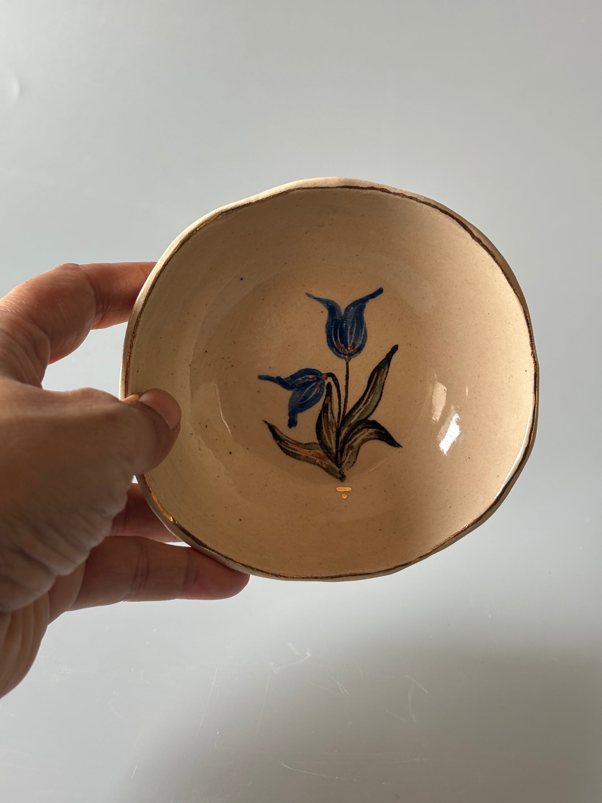 Material: High fired stoneware clay; Handmade in artist studio along with Handpainted pomegranate impressions. The piece has been accentuated in 24 Karat Gold